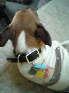 ちゃちゃ、チョビの予防注射済みの鑑札が変わった!青くて軽くさらに小さくなった、いつもならこの鑑札はすぐさまその辺の引き出しなんかにしまいこんで首輪に付ける事がなかったけれど、今回のなら抵抗なく付けられる。超小型犬でもこれなら良いんじゃない?原則的には常に付けている事を義務づけているものだから・・・今まで付けなかった言い訳、と、杉並区保健所生活衛生課、考えてくれましたね。ちゃんと付けましたよ。