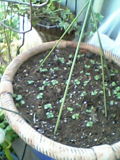 去年の青じその種、放っておいたのに芽をだした。今年は、どんだけーー。