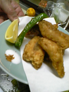 フグひれ酒といったらふぐのから揚げ・いいですねぇ、このごろの寒さにはこんな感じで暖まってみては?なーんて実はわたくし日本酒が飲めない・・・飲める人が羨ましいです。・・・さて後でビール飲もうっと。