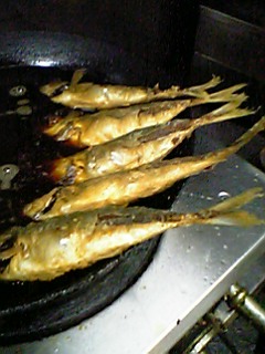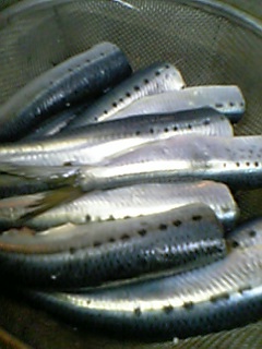 鰯、いわし、立田揚げの支度をしています。