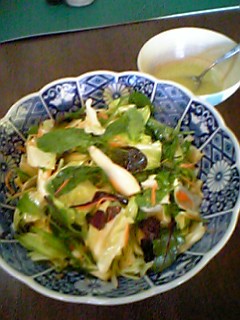 有り合わせのもので作るサラダ、朝ご飯だけは家で食べるので一応主婦業の一部ですが手抜きの多いこと・・・でもま、いいか。