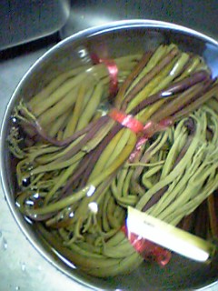 春に収穫した蕗や蕨、塩漬にして保存してあったものを塩抜きしています。煮しめに使おうと思います。私の田舎の亡き母の味にしたいのです・・・。