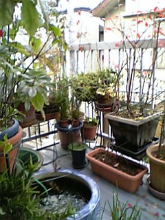 枯れ葉が散り枝が目立ってきました、でも狭いベランダはやはり鉢がたくさん、雨上がりの、こんなお天気の日はちょっとだけでもと植木鉢の掃除、枯れ葉やらゴミは結構出てくる。 途中でやめてしまった。 ま、いいか! 「枯れ木も山の賑わい」だからー。