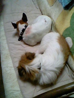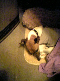 ちゃちゃ、此処はわたしの指定席。足を出したら邪魔そうにはらい除けられてしまった。(゜o゜)