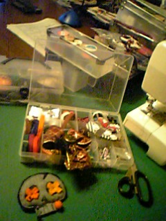 今回コサージュ作り、材料を広げては、ちょこっといじっては片付け、また引っ張り出しては仕舞い込み、なかなか仕事がはかどりません・・・(+_+)。