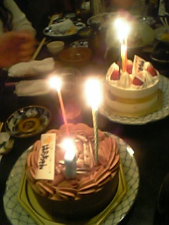 昨夜は原ちゃん・径ちゃんの誕生日・だからケーキが二つ並びました。だって年が違うからローソクの数が違うし・・でも同じ誕生日を一緒に祝うのも楽しいものですね。二人ともに、おめでとう!ございます。来年もローソクを一本ずつ増やしてまた盛り上がりましょう。