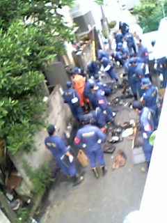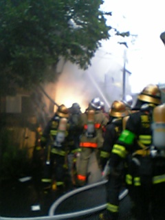 二階の窓を開けたら斜め前の古アパートから煙が出ている!お向かいさんと向こう隣と我が家の三げんが表にでて水を準備しながら、(声をかけてくれた向こう隣さんが消防には通報したしたという事で、)とにかく花の水やりホースで放水した、お向かいと我が家二本の頼りないホースでもやはり何もしないよりすごーく頼もしく感じる。5分もしないうちにサイレンが聞こえた、杉並消防署、すごーく早い!ご近所の底力とはいうものの、こんな時に近所の住人の本質が見えてきた。…朝四時過ぎから今7時半をまわったところ、まだ消火の後始末作業は続いている。