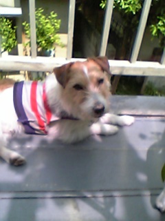 夕べ、散歩から帰ったチョビは、裸!でした。着ていたシャツがないんですー