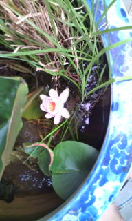 花が咲き始めたら 早いです。次から次へと咲き始めました。 メダカのいないメダカ鉢 で睡蓮が咲いてました、小さく控え目なので見落としてしまうところでした。
