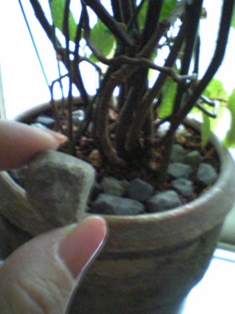 後ろの植木鉢にある小石が今までのコレクション、ところでこの石、何に使うつもりなのかな?
