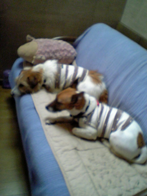やっと明日は晴れるようですが、肌寒い日が続きましたね。犬達もちょっとふてぎみ-。