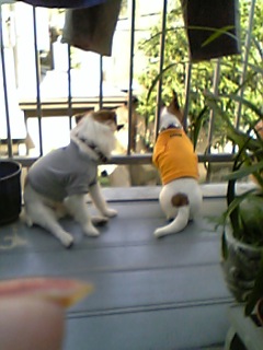 私のケータイは絵文字が出ないようなので使わないようにしましょう。昨日は大急ぎで洗濯やらメダカの水掃除やらしてチャチャ、チョビを着替えさてコミュニケーション。今日はこれからのワンコ達のティーシャツでも作ってあげよう。夕方までの時間に生地を買いに行ってきます。