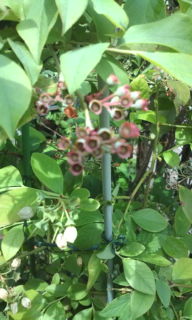 グミやブルーベリーも実の形がわかるようになってきました。 色付いたら 一緒に食べようね だからチョビ元気になって !!! ね。