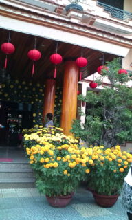 昨日朝 ホテルの前 黄色い菊の花が入り口 両側に飾ってあるのは 旧正月の飾り付けの名残、キンカンの実の付いた鉢も多く見られました。日本の門松みたい、 ランタンの街を後にしてダナンの空港から成田へ…到着 やはり和食はホッとします。 暖かいものはしっかり暖かく メリハリを感じました。