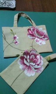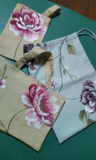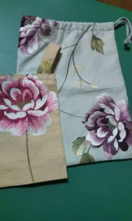 いただいた布で刺繍の花柄がきれいだったので 夜なべして 作りました。o(^o^)o …。