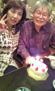 ジャズフェスティバルの会場とは 違った顔で お揃いの お二人 23日は塚越画伯の誕生日 塚越三代さんも歌い終えて ちょっとホッとした顔 です。