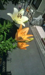 年追う毎に花の数も少なくなってきて オレンジ色だけと思っていたら 白いユリがオレンジのあとに花を咲かせました、 頑張っていたんだ、 百合たち少ないながらも今 見頃…