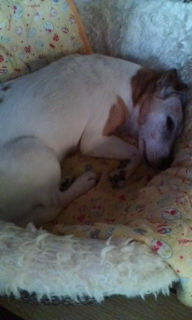 最近の チョブ夫 犬 です。しっかりと年をとって寝ているほうが多くなってますが 食欲は十二分なのでちっとも痩せず 動きがノロいのに重さは減らず 、、。 ちゃちゃ子 犬ですか? やはり寝てます…ー☆