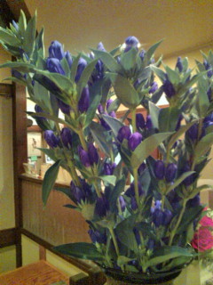 立派な花が届き、我が家のテーブルの上で一番いいポジションに置いた。その横で 手拭いシャツづくりのミシンかけて…それでなくとも狭い中で、ちまちまと 一枚 完成!!