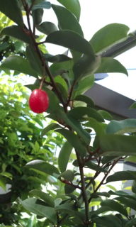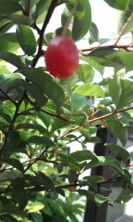 タワラグミの実が赤くなってます、ほんの二三個だけど初めて実をつけました。植え替えたブルーベリーも実をつけました、まだ青いけど…。後はゴーヤができたらこの夏は楽しめそうです。