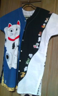 マイブームまだ続いてます。10着以上作りましたょ、みんな行き先が決まってますが 今までコレクションしてきた手拭いが残り少なくってきて そろそろ次のテーマに 移行する頃合いかと 思います。