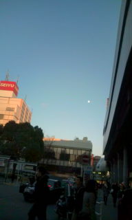 東京の空です。お正月の爽やかに晴れ渡った空 月の残像まですっきり見える青い空 寒いけど これがホントの本来の空なのです。 あどけない青空への 鑑賞でありました。