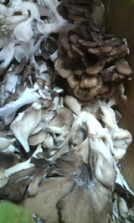 秋の味覚が届きました、 舞茸とセンボンイチメガザ?スギタケ?(私たちはボリボリ)とよんで美味しい雑キノコです。懐かしくて此方ではなかなか口にできない貴重なものですょ。 小躍りしてます。