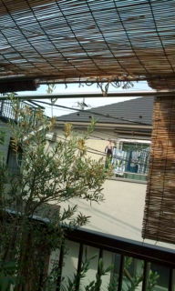 あまりの暑さに慌てて葦簀(よしず)を吊りました。 「洗濯物はどこに干すの?」 と云う夫を無視して…… その時は 外せばいいでしょ なにせ 夏暑く冬寒い部屋に面しているんだから仕方ない そのうちなんとか工夫しましょ、(--;)