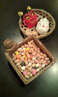 えん家には 鬼も福も来ません、ひたすら お豆さんを食べながら お客さん待っています。寂しいえん家、、、。(>_<)